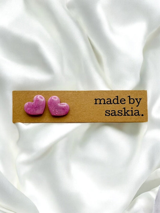 Purple glitter heart studs