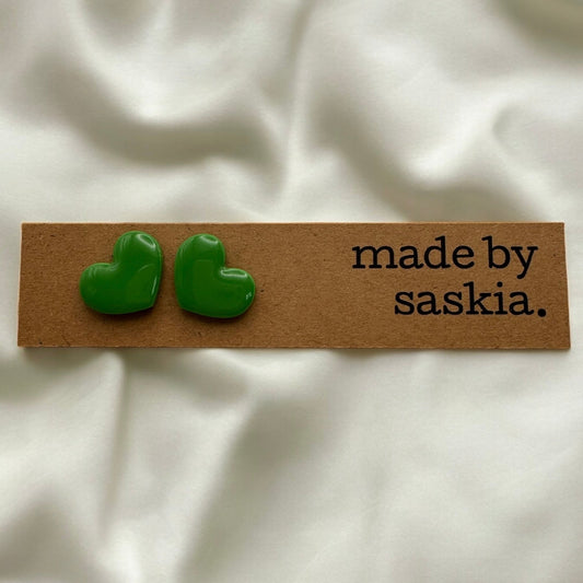 Grass green heart studs
